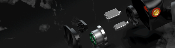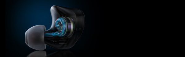 Two Knowles drivers paired with a beryllium-plated dynamic driver placed near the opening of the sound tube, controlled by a physical + electronic frequency crossover system masterfully cover the entire frequency response range.