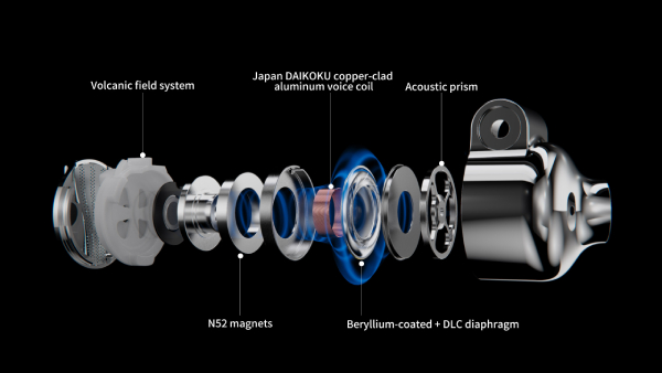 We have conducted much research and experimentation when choosing the materials for our new dynamic driver. By combining the use of Beryllium and diamond-like carbon (DLC), we make full use of the physical rigidity and flexibility properties of the materials to reduce unneeded vibration and appropriately damp sound for improved quality. Overall, the frequency response is balanced and distortion is minimized at all frequency ranges.