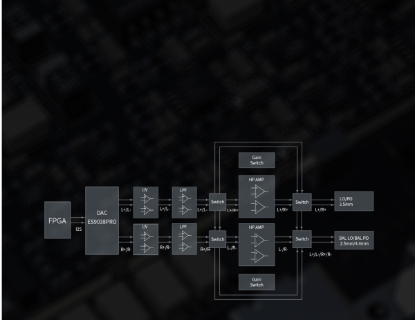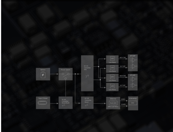 Fully separated digital power supply, effectively reducing crosstalk and interference.Multi-stage analog power supply, high-precision and low-noise for early signal processing. Multi-voltage servo power supply for headphone amp, capably driving low and high-impedance loads.