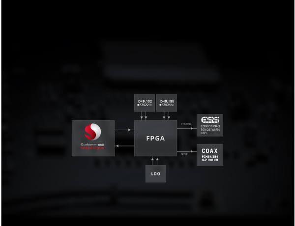 Audio data is passed through a FiiO-developed 4th-gen FPGA with phase-locked loop technology, which works together with two custom Japanese NDK femtosecond crystal oscillators to provide a high-precision and low jitter unified clock source for the entire audio architecture. This is all done in the pursuit of purer sound.