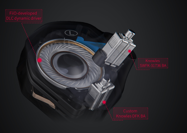 The high frequencies are produced by the Knowles SWFK-31736 BA driver with its high resonant frequency. The driver contains richer highs details and airiness while also helping to further enhance the size of the soundstage, which is relaxed and comfortable to listen to.