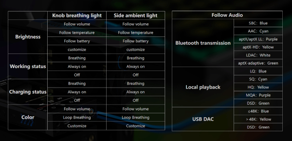 The M17 features a seven-color RGB ambient light system with extensive customization options. Colors can be set to be either fixed, to follow the audio, or to follow a cycle. The brightness of the ambient light can be set to change depending on the current power, volume, or temperature. And finally, the top and side ambient lights can even be controlled separately, allowing you to dial in exactly how you want your dazzling lights to be.