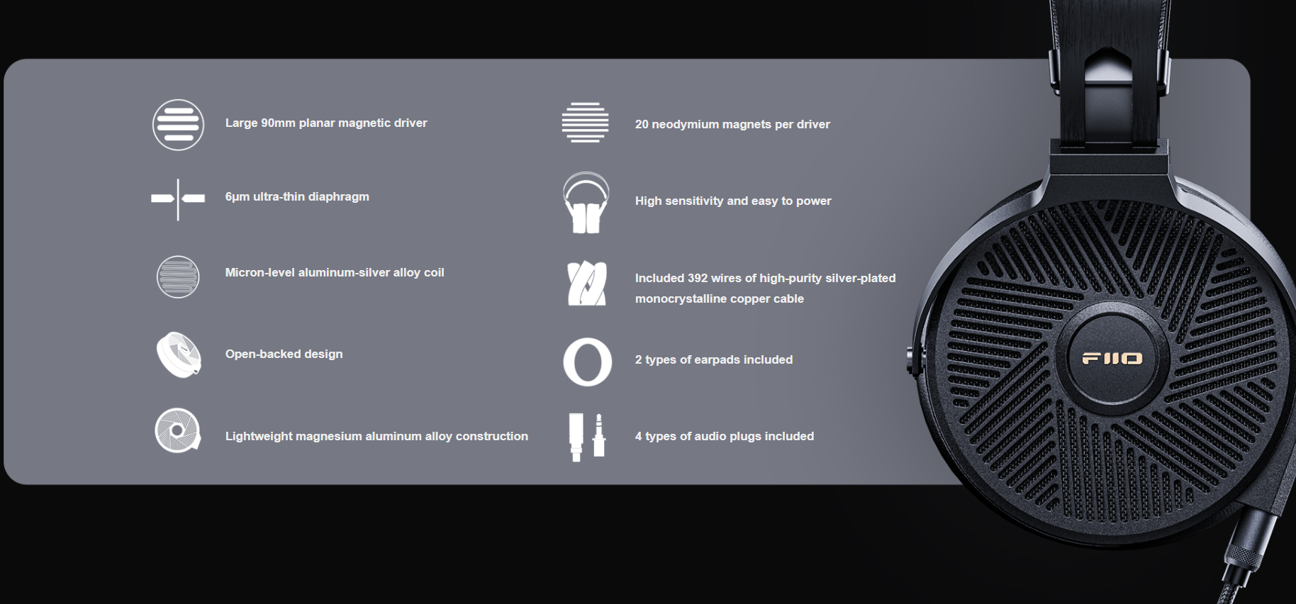 FiiO 90mm Open Planar Magnetic Headphones - FT5