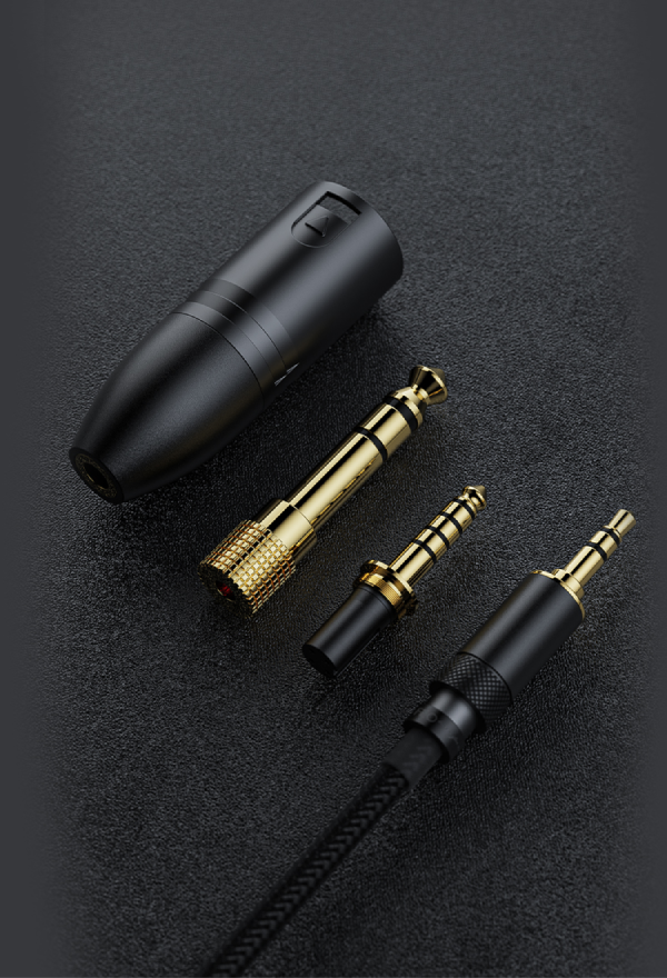 The FT5 comes with 4 swappable audio plugs: 3.5mm/4.4mm interchangeable plugs 3.5mm to 6.35mm adapter 4.4mm to XLR-4 balanced adapter