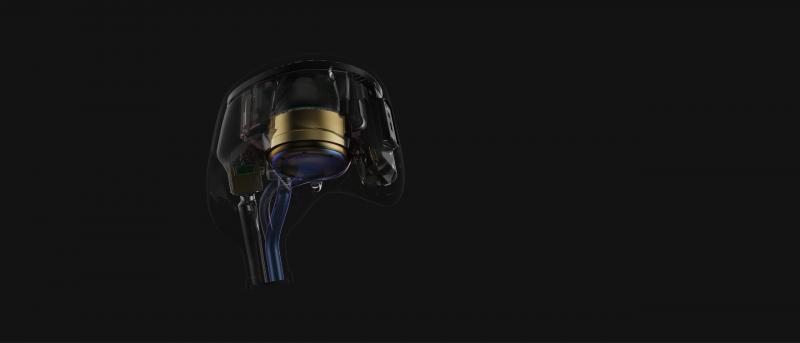 The FX15 tribrid IEM features the patent S.Turbo acoustic design[2] designed to maximize bass performance. At the heart of the S.Turbo design is a lengthened low-frequency sound tube that effectively filters high-frequencies produced by the dynamic driver, so that the sound of the bass dynamic driver and mid-to-treble balanced armature driver are smoothly connected and do not interfere with each other for optimal sound quality.