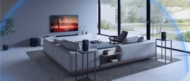 BRAVIA Theatre Bar 8 combines physical and phantom speakers, creating a wider surround sound field that covers more of the room.