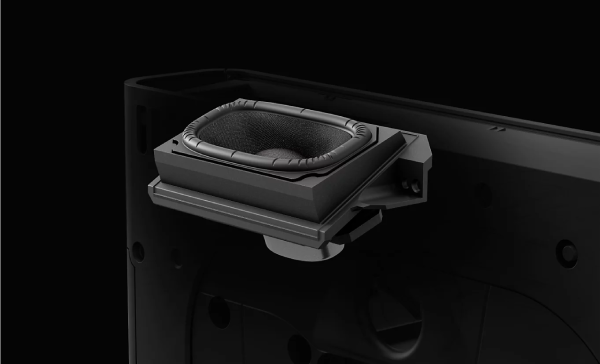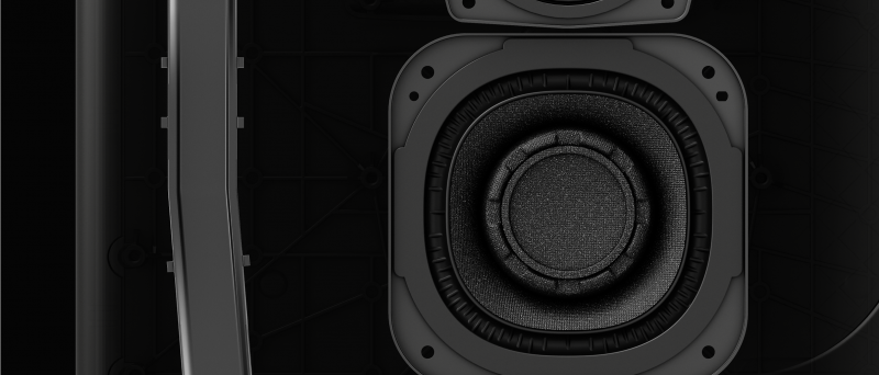 The speakers’ unique rectangular shape maximizes the diaphragm area for punchy bass. It also reduces driver excursion and maintains sound pressure, ensuring less distortion and greater vocal clarity.