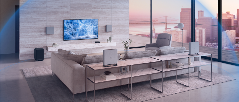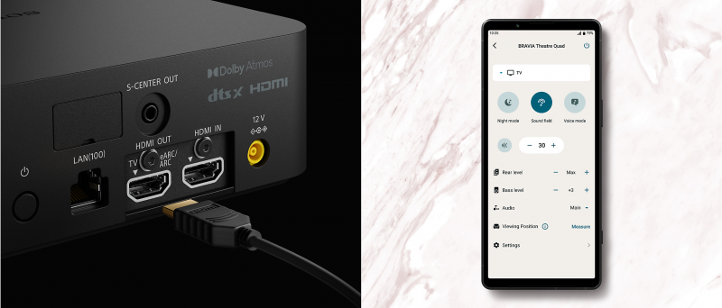 Simply plug in BRAVIA Theatre Quad, connect to your TV using HDMI and power on. With LAN, HDMI IN and HDMI OUT (eARC/ARC), you’re all set to enjoy a new spatial surround sound experience.