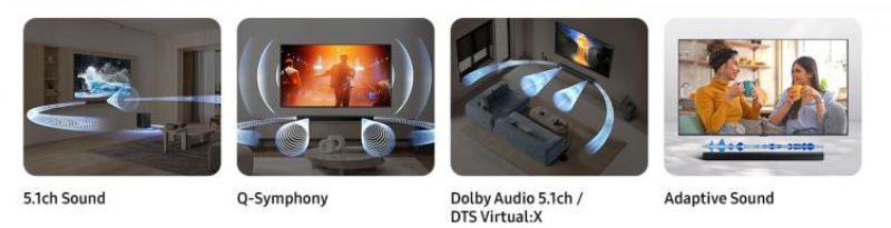 With Q-Symphony, AI separates voice and background sounds for playback through the optimal channel. Now you get crisper dialog and more immersive 3D surround sound, playing through your TV speakers and soundbar in complete synergy.