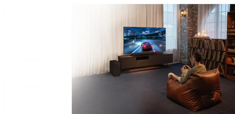 Powerful Up firing speakers, acoustic beam and strong woofers of Soundbar provide 3D sound that's optimized for gaming. Soundbar automatically activates the Game Mode in sync with TV.