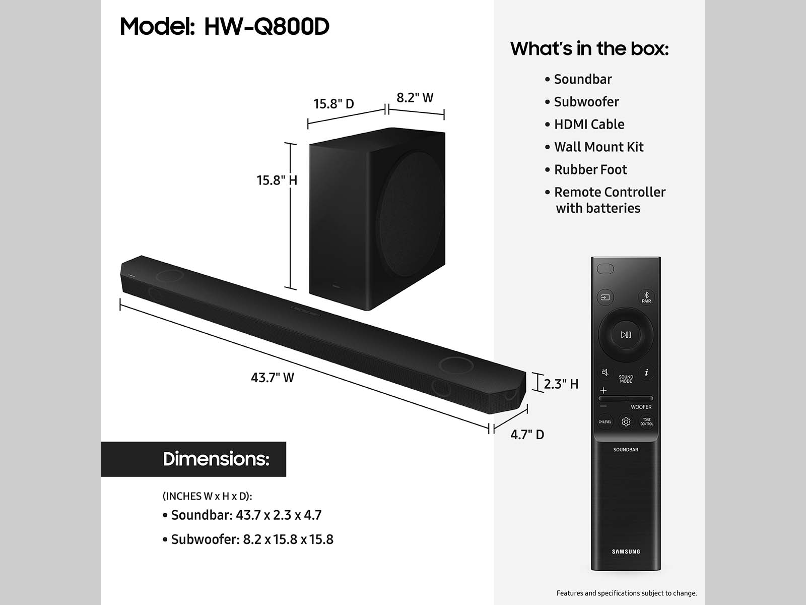 Samsung 5.1.2 Channel Q-series Wireless Dolby ATMOS Soundbar with Q-Symphony - HW-Q800D/ZC