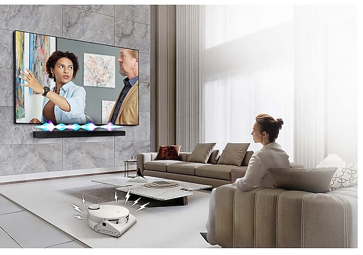Pair a Samsung TV with a Samsung Soundbar to unlock a new level of powerful audio. Experience content like never before only with Samsung products. With Q-Symphony, your speakers work together to optimize all the audio channels to operate as one.