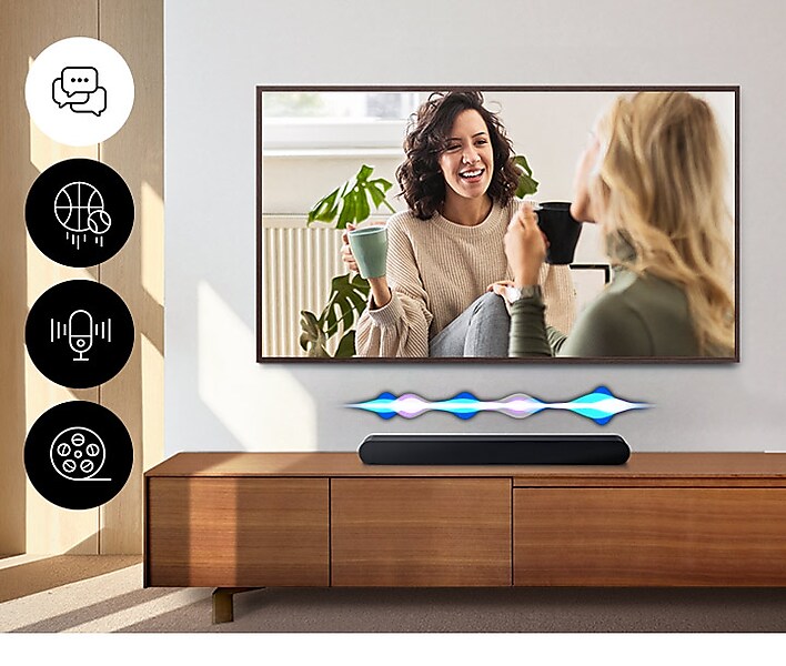 Ensure dialogue and commentary are not drowned outso you never miss an important moment. Active Voice Analyzer breaks down room noise so that onscreen voices are always optimized.