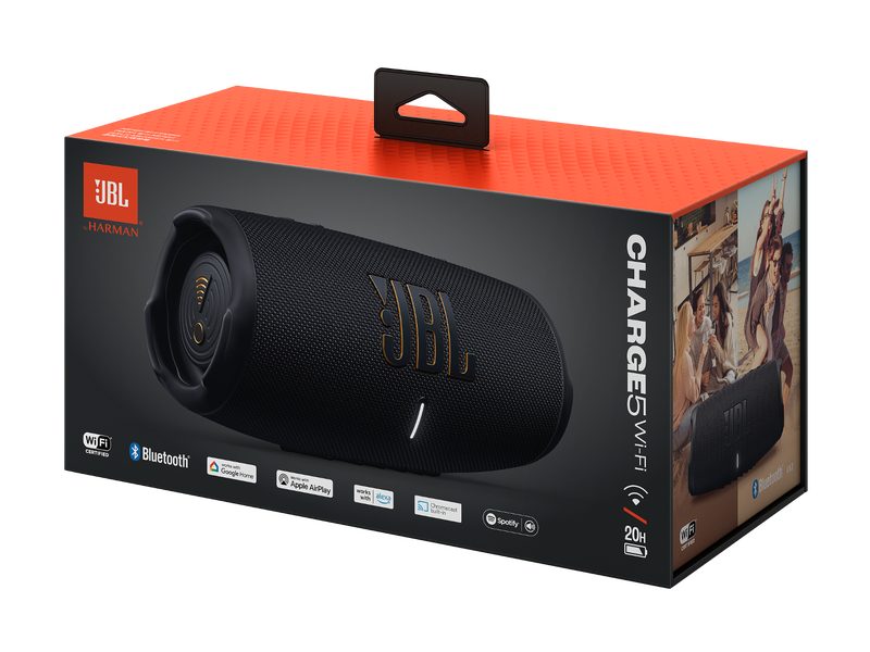 Enjoy long-lasting listening adventures as you easily take the JBL Charge 5 Wi-Fi with you from room to room, then out to the beach or a backyard pool party. With up to 20 hours of battery life, you can play music till the sun goes down—and comes back up again—before you'll need a recharge.