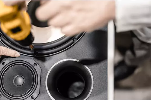 12-inch (300mm) cast-frame, white pure-pulp cone woofer in bass-reflex design with front-firing tuned port.