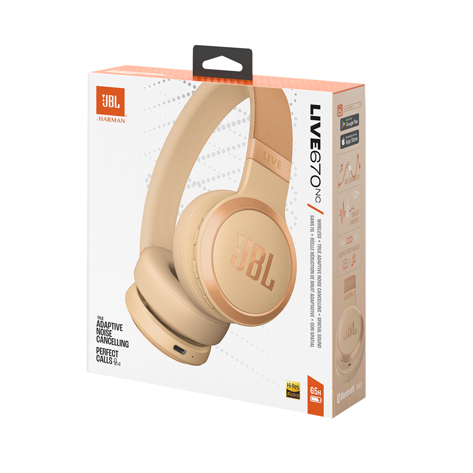 JBL Live 670NC Wireless True Adaptive Noise Cancelling On-Ear Headphones in Sandstone - JBLLIVE670NCSATAM