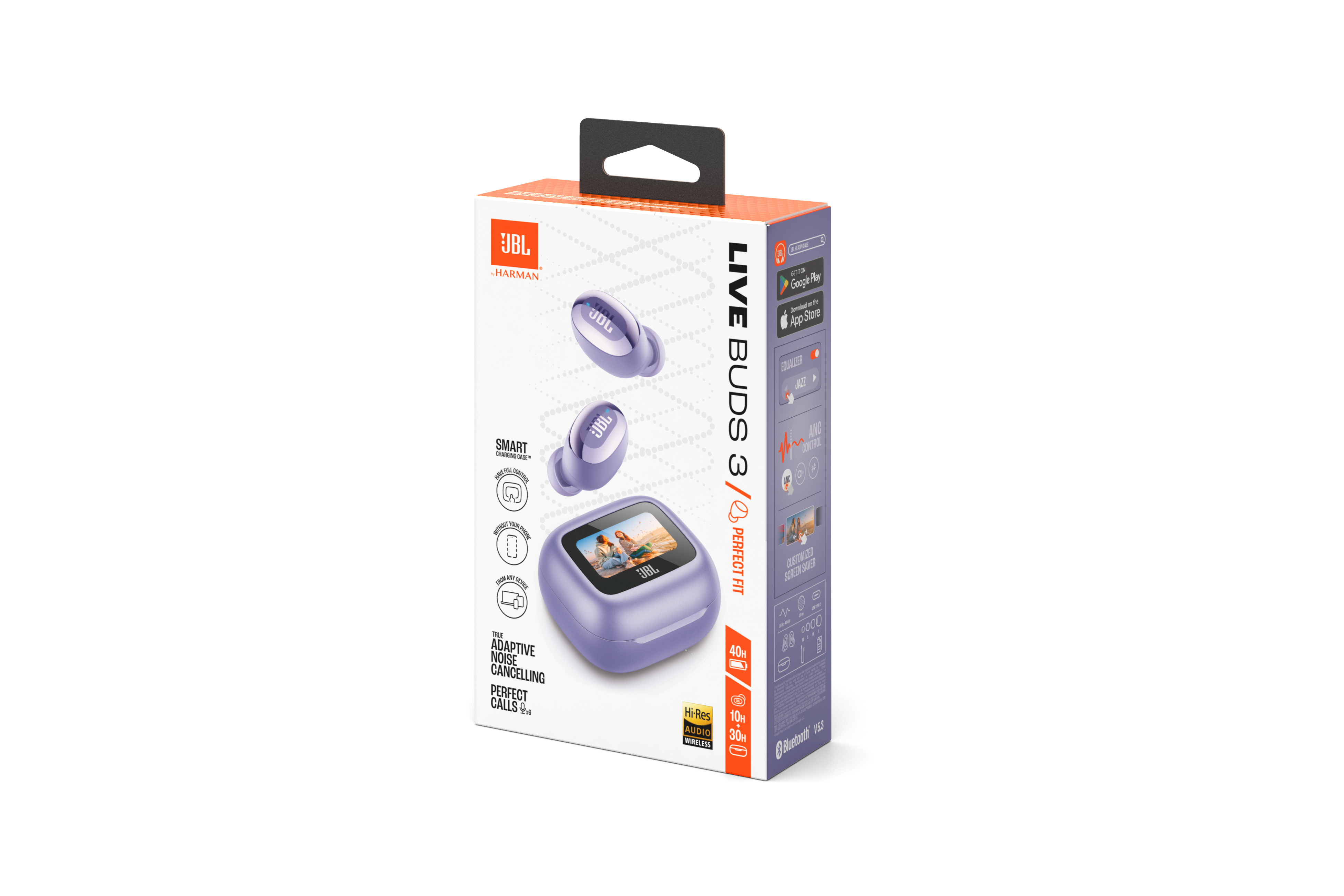 You can customize every aspect of your JBL Live Buds 3 earbuds with the 1.45-inch touchscreen display on your Smart Charging Case™. The display gives you full control of your sound on any devices - laptop, TV, smartphones or tablets -, without needing to access the JBL App on your smartphone.