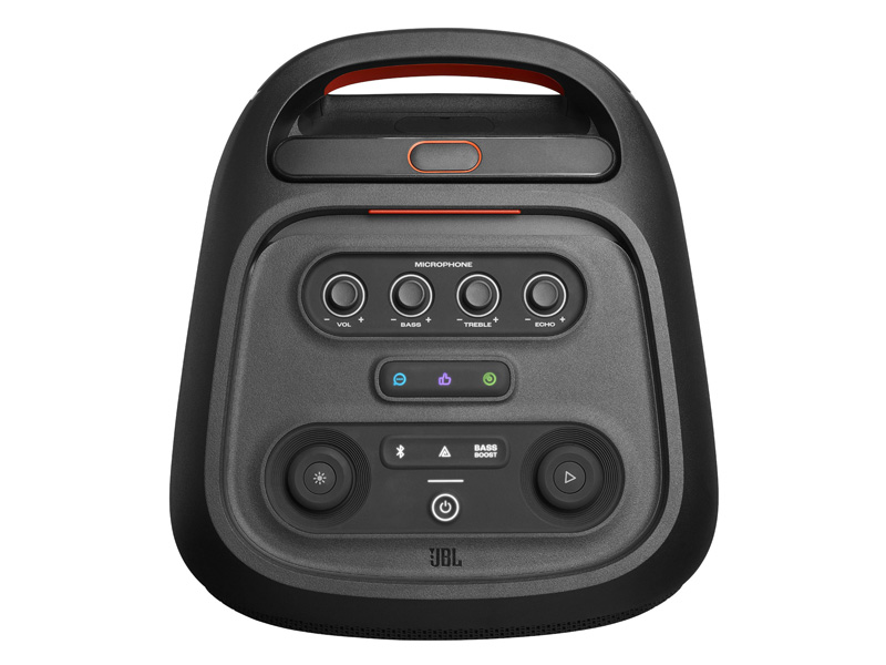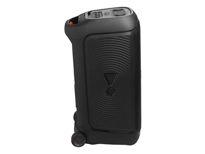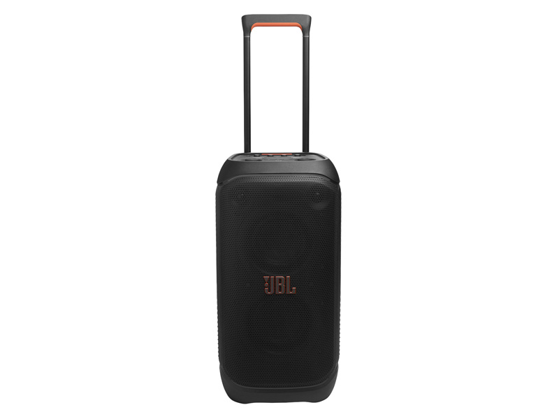 Portable party speaker with powerful JBL Pro Sound, an adaptive lightshow, splashproof, replaceable battery, telescopic handle and wheels