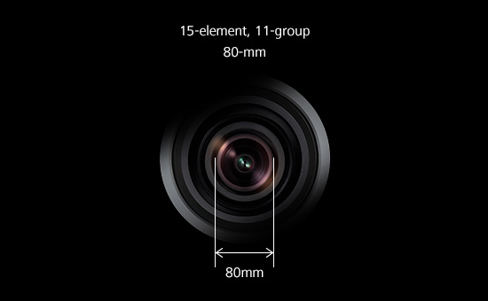 Newly designed large aperture (80mm, 11groups, 15lenses) 4K compatible lens delivers full native 4K D-ILA resolution to every corner of the screen.