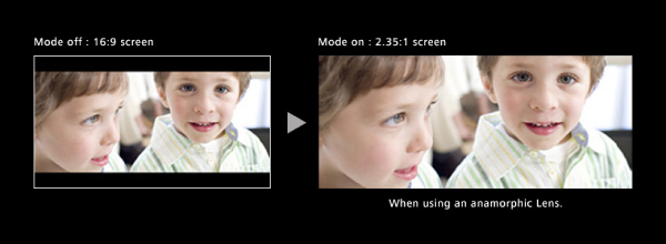 A 2.35:1 aspect ratio for wide cinematic films can be enjoyed by combining the projector with a third-party anamorphic lens to create dynamic picture reproduction just as can be seen in a movie theater.