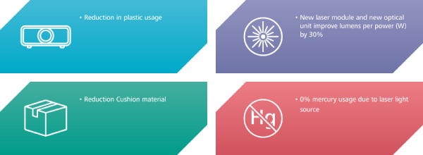 The design of the new projector models use significantly less plastic, which also reduces transportation costs. This leads to a product that is much more environmentally friendly.