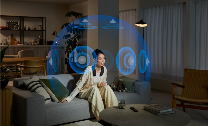 Tailor your Dolby Atmos® and DTS:X® experience by combining our wearable speaker or BRAVIA Theatre U with BRAVIA for spatial surround. Works with some Sony Headphones too.11