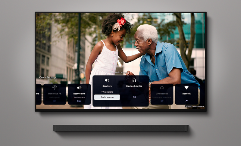 Easily control features such as sound field and volume using just the TV remote. With an integrated UI, soundbar sound settings automatically appear on the BRAVIA Quick Settings menu.101112