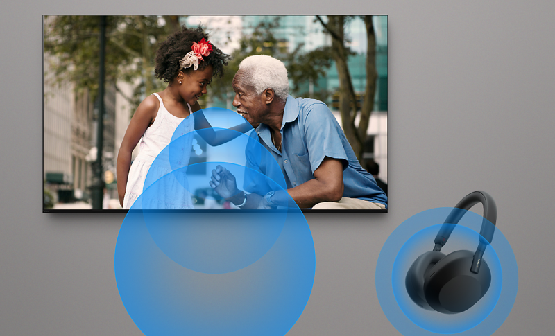 Our TV with simultaneous sound output lets you listen to a show on your headphones while your partner listens to the same show through the TV speakers. You can also change the volume using Bluetooth devices separately. Using Sony’s headphone, you can smoothly switch Bluetooth® connection from other devices.15