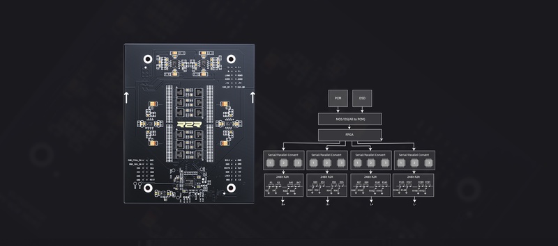 The entire audio chain, including the R2R DAC, LPF, volume control, and headphone amp, uses fully differential signal processing for excellent interference rejection, minimal distortion, and high dynamic range. The amplification circuit also features gain control, headphone protection mechanisms, and POP noise elimination for a robust and reliable audio experience.