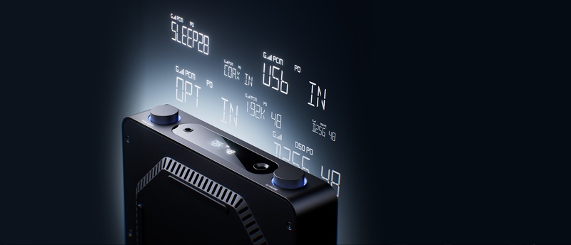 A custom, high-contrast, long-lasting HD LCD display* clearly shows the device’s current status at a glance, including sampling rate, volume, gain, and output mode.
