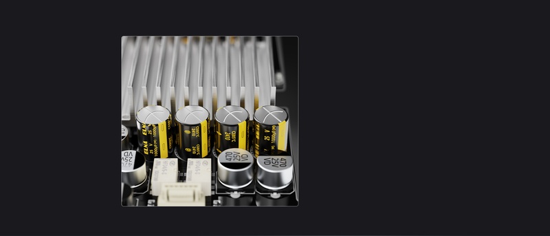 Premium ELNA RA3 series silk-film audio capacitors and specialized audio tantalum electrolytic capacitors work together to ensure a pure, stable power supply for the device, delivering a warm and natural sound.