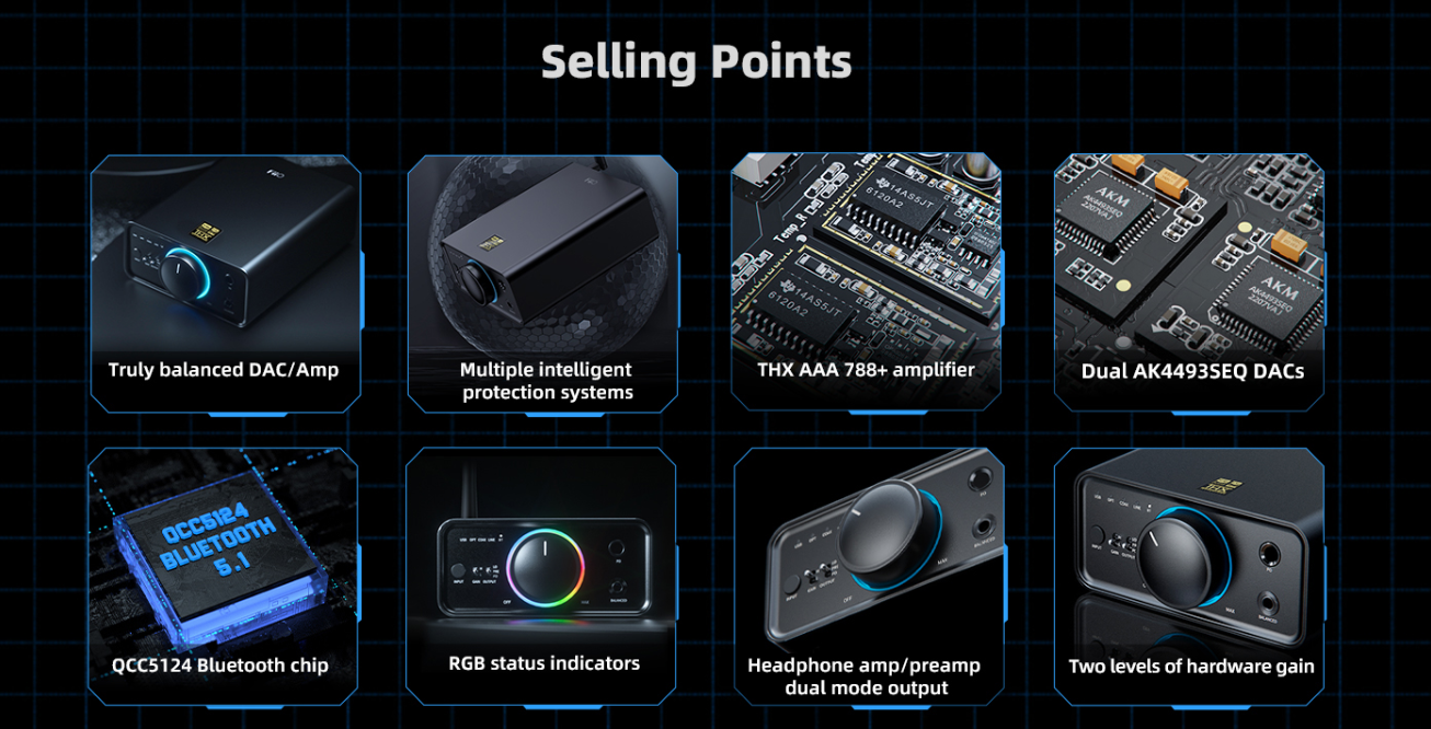 Truly balanced DAC/Amp | THX AAA 788+ amp technology | Dual AK4493SEQ DACs