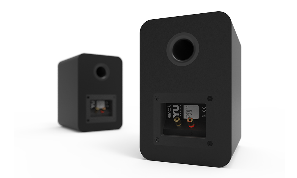 Pair Kanto YU Passive 4” bookshelf speakers with an amplifier of your choice and enjoy your favorite tunes the way the artist intended. Featuring 4-inch Kevlar® woofers and 1-inch silk dome tweeters, these speakers produce a neutral, balanced tone. A bottom-mounted 1/4”-20 threaded hole attaches to compatible Kanto speaker stands for confidence-inspiring security and audio coupling. YU Passive works great on a desktop with a DAC/amp combo, or in a dedicated two-channel listening station. Enhance your TV’s sound by connecting YU Passive to an integrated amp or add them into a home theatre system as rear, side, or height channels.