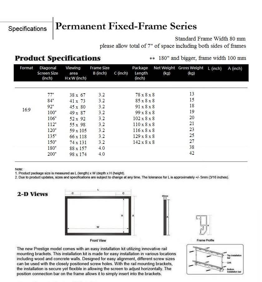 120" Grandview Permanent Fixed Frame Projector Screen - LFPU120