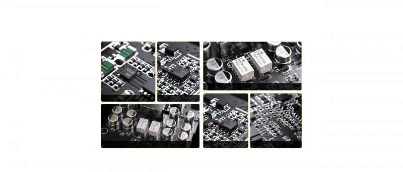 The six-stage fully differential audio circuit, built to full-size desktop standards, effectively displays audio dynamics, lowers crosstalk, and ensures signal stability and integrity to accurately render every last detail within the music.