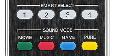 Four Smart Select function buttons on the included remote control store your preferred setup — including input, volume and Audyssey configuration — for particular sources. With the push of a button, the receiver perfectly configures for any source, from Blu-ray to TV set-top box, to your favorite Internet radio station and more.
