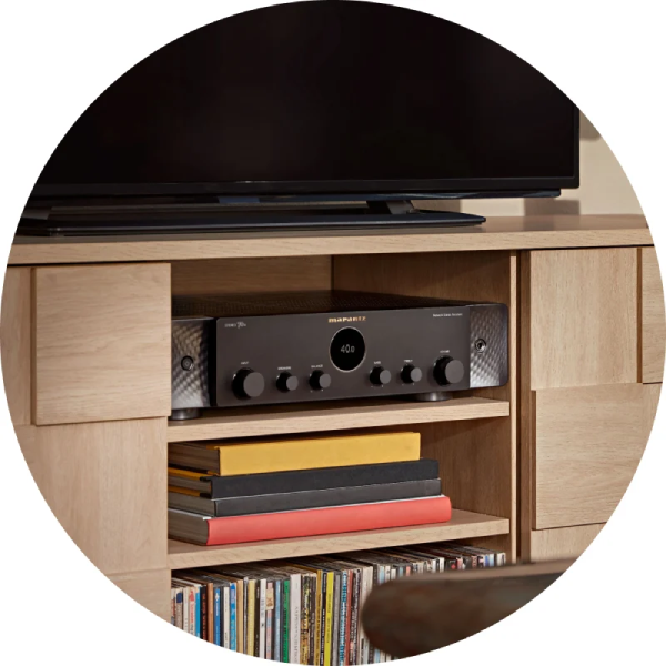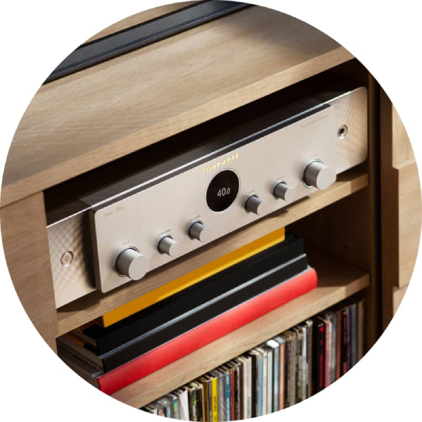 - See your volume level from a distance, plus see other device information from the iconic Marantz porthole display window. Additional configuration options are set using the on-screen display.