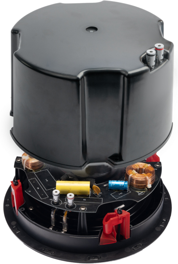 All Motion CI in-ceiling speakers have the option for a retrofittable back can or enclosure. This helps contain the sound coming off the back of the speaker to dramatically reduce unwanted sound that can travel through the floor and up into the living space above the speaker. For those desiring increased bass output, or for when sound control is not required, you can simply choose to use the MC8 without the optional enclosure so it can take full advantage of the larger air volume provided by the space in the ceiling.