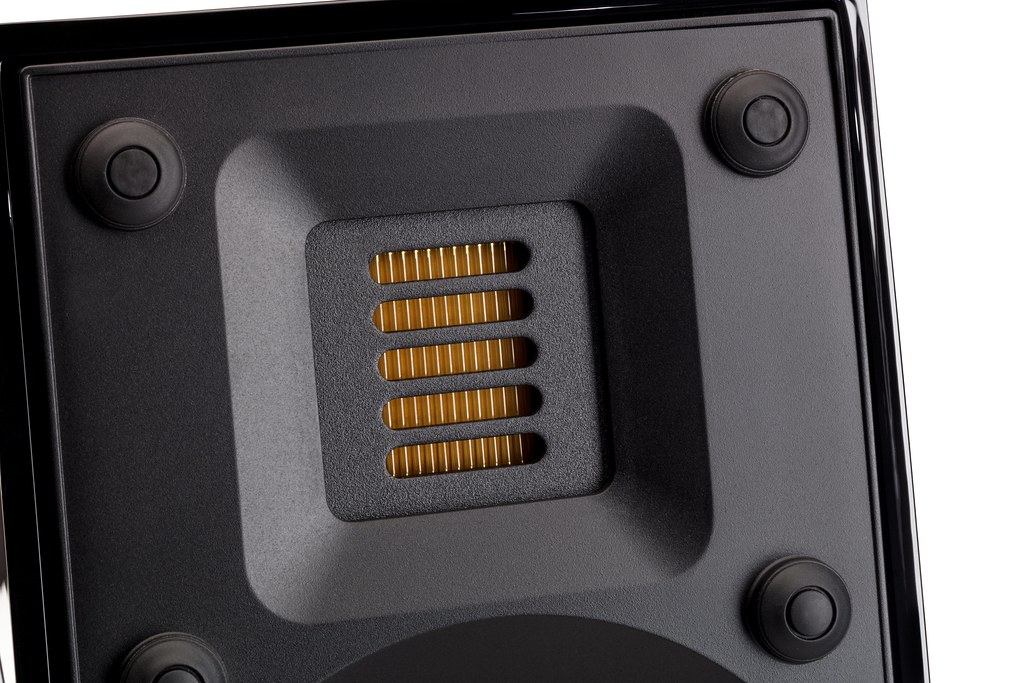 Convenient, high-quality, push-style binding posts are recessed into the speaker's cabinet along with curved guides that allow wires to slide into place effortlessly. These binding posts are also designed to facilitate the use of banana plug connectors.
