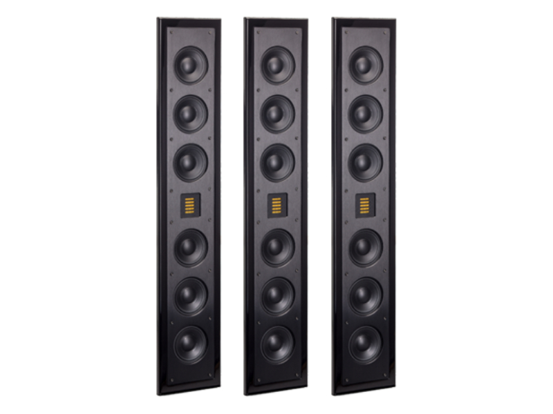 The secret to the Motion SLM XL's outstanding performance is the innovative dual 4-inch, ultra-slim fiber cone woofers and quad 4-inch high-velocity passive bass radiators, paired with a Folded Motion tweeter to create stunning acoustical alchemy typically found in much larger speaker systems. Hidden discretely underneath the grille, the drivers are held securely in place by a solid, black-anodized brushed aluminum baffle. The high-gloss black SLM cabinet is only 1.45-inches thin, for a total wall protrusion of 1.83-inches with magnetic grille and included wall mount bracket.