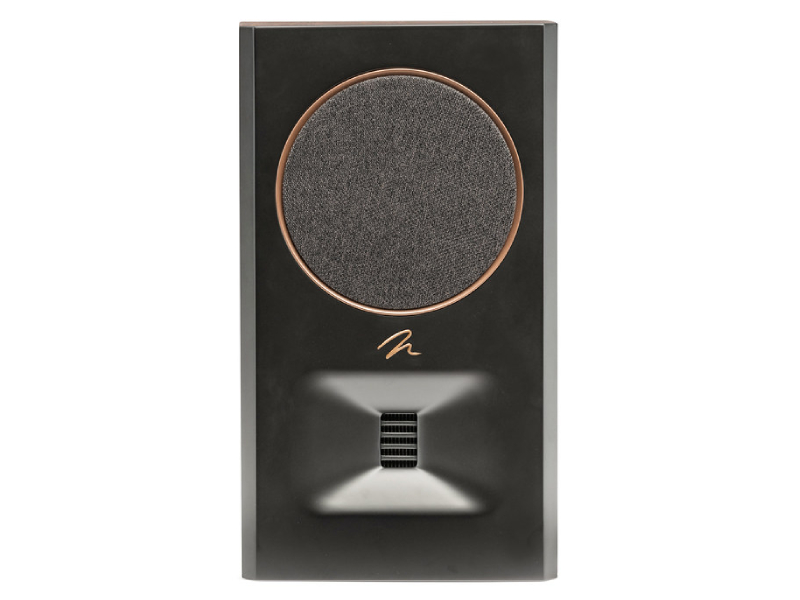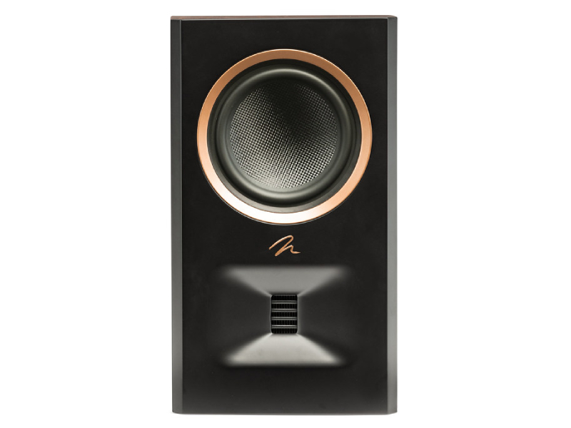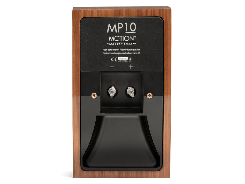 MP10's Stealth Bass Port allows it to achieve comparable bass output to that of traditional bookshelf speakers but at half the depth. Its innovative shape and mounting system allows MP10 to be used as a shallow depth bookshelf speaker or wall mounted using the included bracket. When wall mounted, the brilliant Stealth Bass Port does not interfere with the bracket allowing MP10 to be mounted parallel to the wall surface or angled downwards into the room, perfect for when installation above ear level is desired.