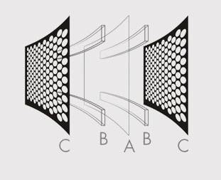 An electrostatic transducer has three components—stators, a diaphragm, and spars (non-conductive spacers that keep the tall assembly stationary)—assembled as a sandwich. The diaphragm is an ultra-light film impregnated with an electrically conductive material and stretched taut between two stators, which are perforated steel sheets coated with an insulator.