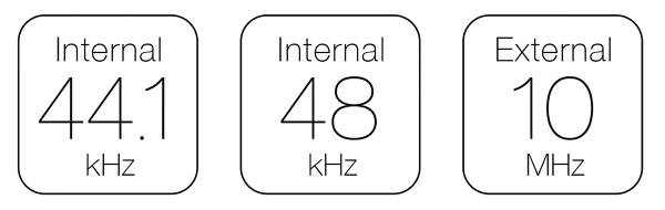 Dual onboard clocks for 44.1k and 48kHz, and an external clock input