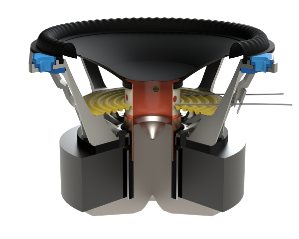 | MID/BASS FREQUENCY DRIVER | 6” (152mm) Ultra-High-Excursion AL-MAG™ Cone with Perforated Phase-Aligning (PPA™) Lens, Gen3 Active Ridge Technology (ART™) with Vertical Mounting System, Advanced SHOCKMOUNT™ Isolation, and a 1.5” high-temp multi-layered voice coil with ventilated Apical™ former |