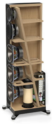 | Design | 5-driver, 3 way hybrid floostanding with active bass, ported enclosure |