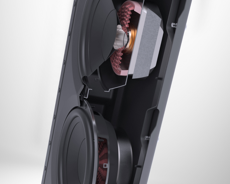| LOW FREQUENCY DRIVER | Two 210-mm (8 in) CFP™ carbon-fiber-reinforced polypropylene cones, 38-mm (1-1/2 in) voice coils, over-molded TPR™ surrounds, 38-mm (1-1/2 in) 8-layer copper wire voice coils, high-temperature polyamide formers, ceramic/ferrite magnet structures |