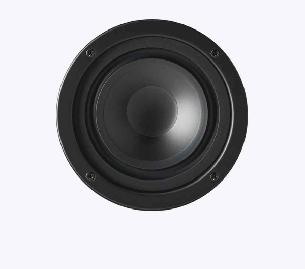 High-performance mineral-filled polypropylene cones with inverted dust caps are lightweight and rigid. Downroll surrounds give them a clean, low-profile look.