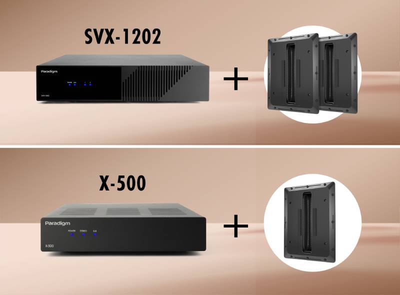 Enhance your sound system with the SFC12-SW in-wall subwoofer and Paradigm amplifiers. Compatible with the SVX-1202 and X-500, it delivers deep, precise bass without sacrificing floor space. Use two SFC12-SWs with the SVX-1202 for greater impact or a single SFC12-SW with the X-500.