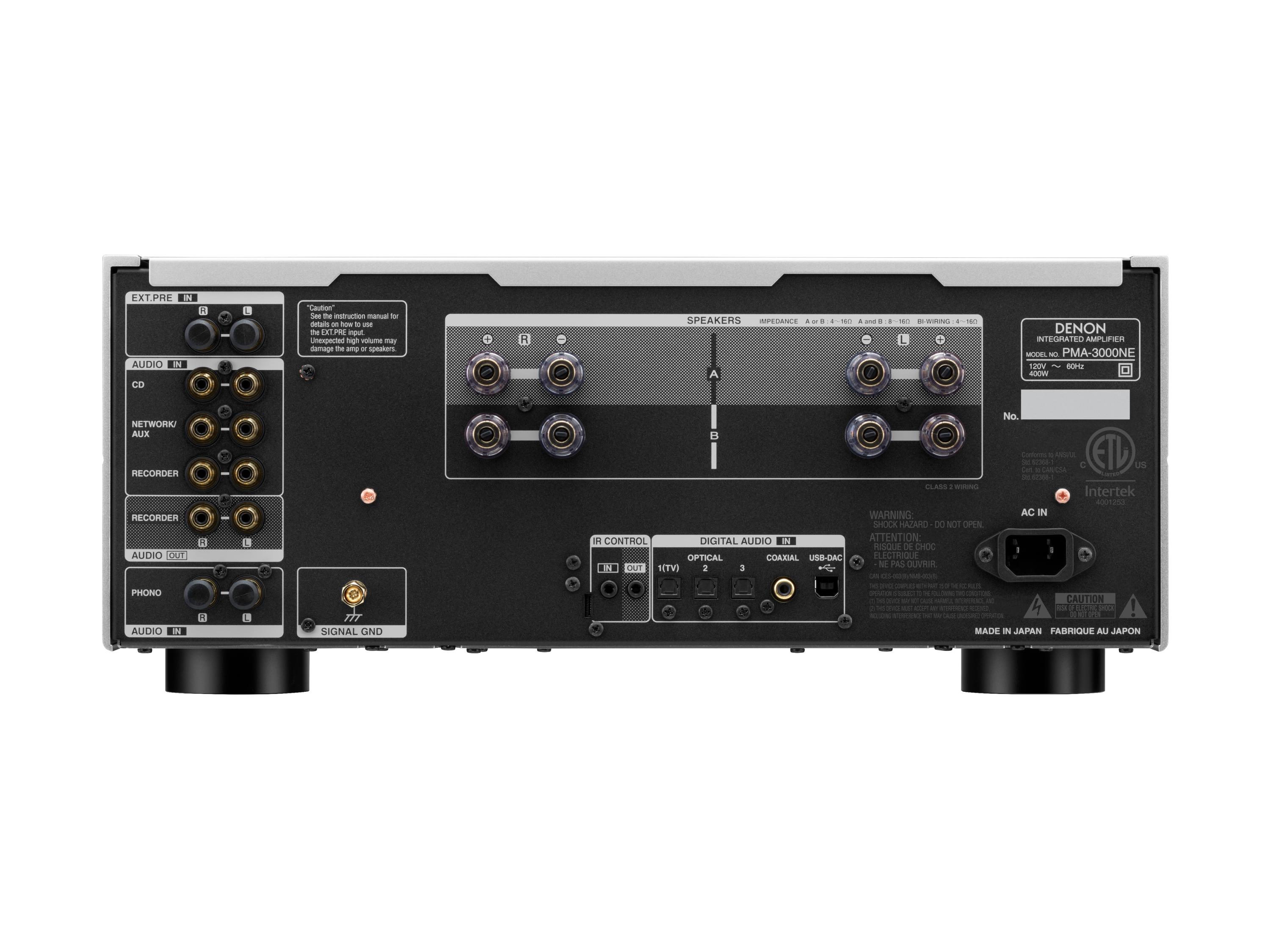 The Denon PMA-3000NE delivers 160W per channel at 4 ohms and 80W per channel at 8 ohms, driving even the most demanding speaker to deliver superior sound in any scenario. Designed and manufactured at Denon facilities in Shirakawa, Japan.