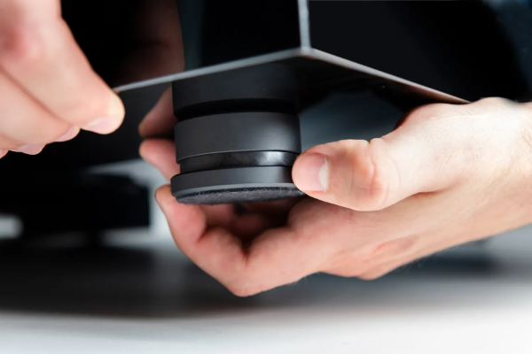 The three height adjustable damped aluminium feet guarantee the perfect stand & massively reduce risk of acoustical feedback.